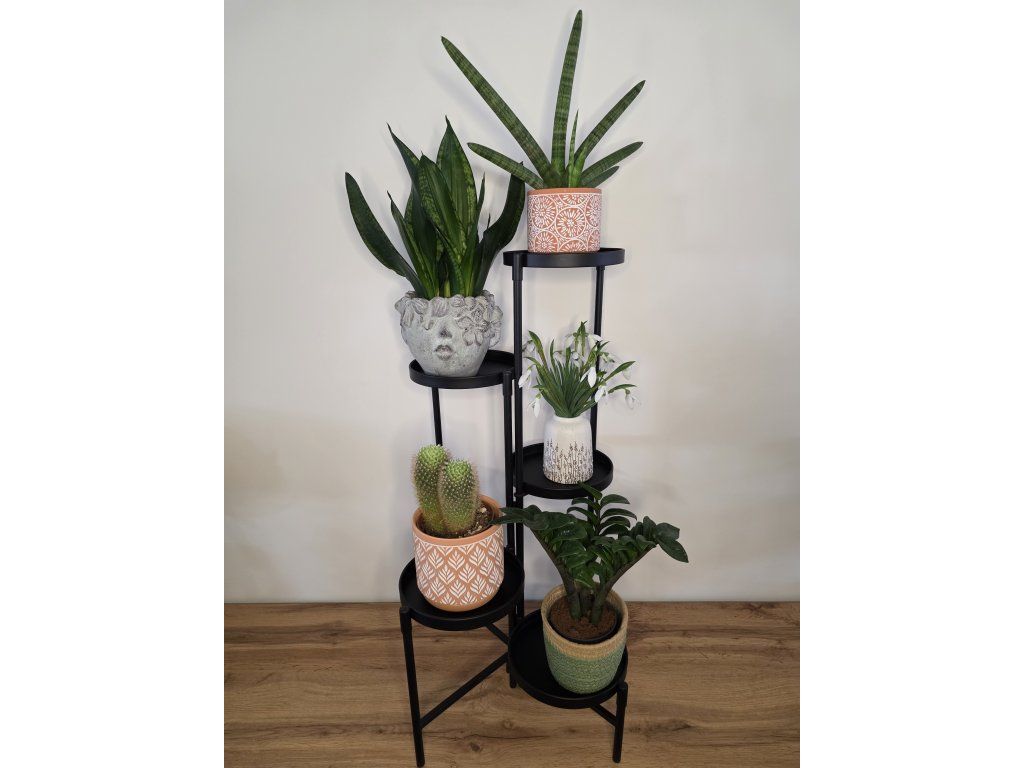 - Pětipatrový skládací kovový stojan na květiny s kulatou podložku.